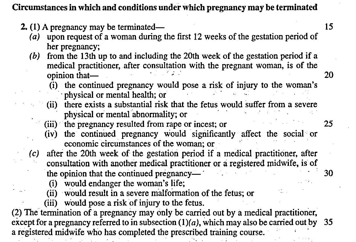 (b) from the 13th up to and including the 20th week (5 months for economic and social reasons!) of the gestation period if a medical practitioner, after consultation with the pregnant woman, is of the opinion that- · ‘ ·